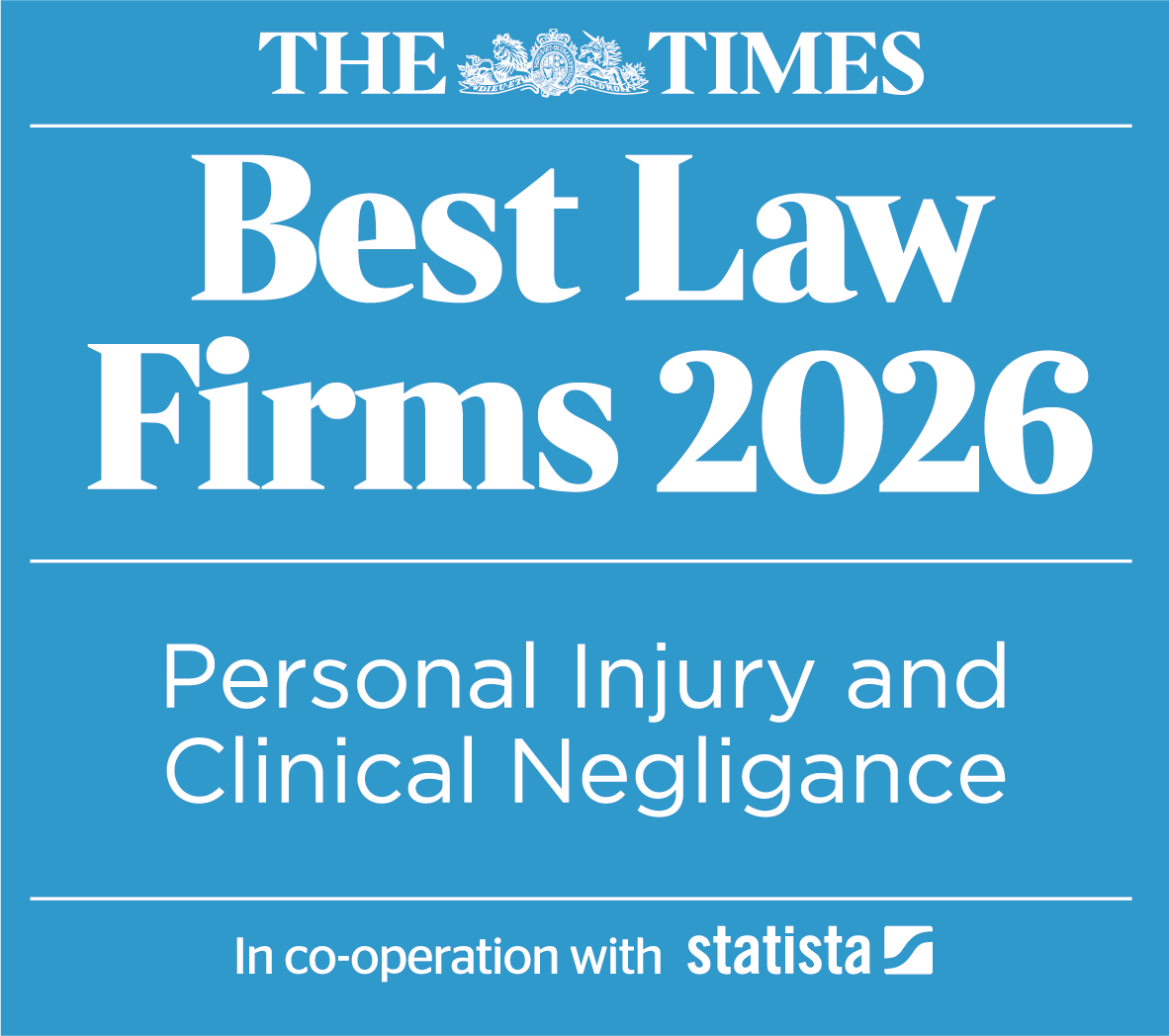Latest award – the Winner of The Legal 500 London Firm of the Year 2019 in the category: Insurance for Personal Injury and Clinical Negligence.